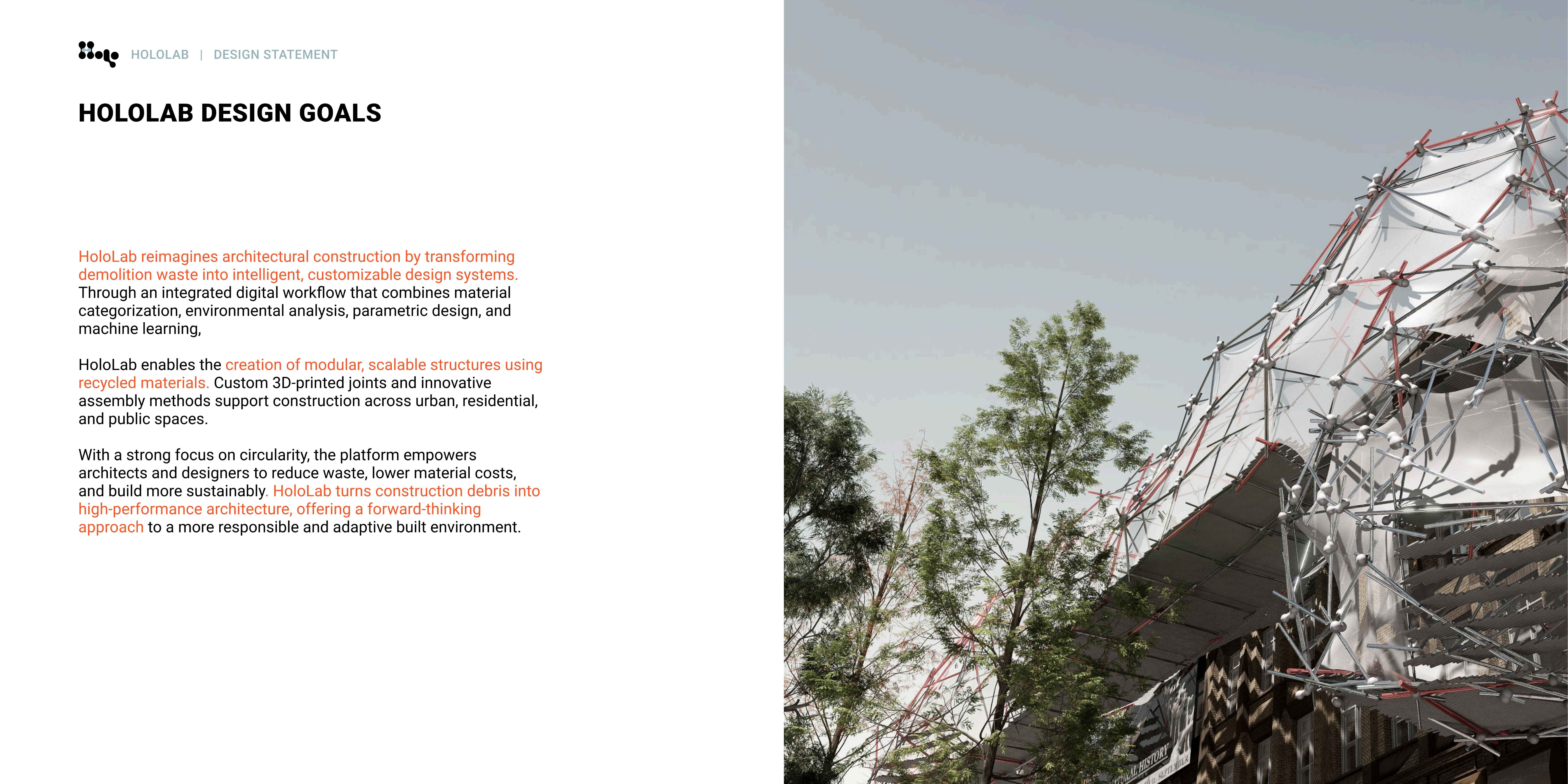 HoloLab redefines discrete industrial waste as a dynamic tectonic resource. Through this AI-driven design workflow, architecture gains the capacity for real-time morphological optimization based on diverse scenarios and user feedback. It offers a new paradigm for sustainable architecture that balances "technical rigor" with "emotional interaction."